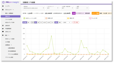 「PRism Insight」は、広報活動におけるメディア露出の数量や論調の分析を効率化し、広報活動が経営活動にどの程度貢献しているかを可視化することを目的とした一元管理・分析ツールである。従来の露出状況解析ツール「PR Matrix ダッシュボード(PRMD)」の基本思想を踏襲しながら、昨今のニーズを反映し大幅なリニューアルを行った。