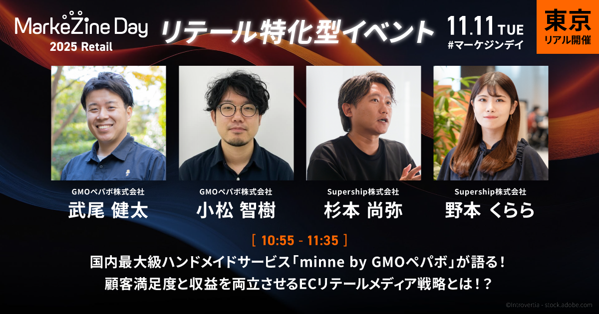 本セッションでは、直近2年間でECリテールメディア戦略を実行し、広告事業を新たな収益の柱として育ててきた「minne by GMOペパボ」が登壇。ECの顧客満足度向上と広告収益を両立させるポイントなどを紹介します。