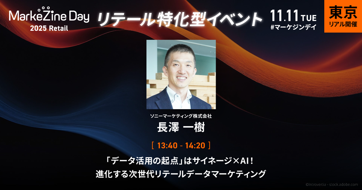 13:40~14:20にB会場で実施するセッション『データ活用の起点はサイネージ×AI!進化する次世代リテールデータマーケティング』では、ソニーマーケティングの長澤一樹氏が登壇。AIとの連携で大きく進化している、最先端のリテールテックを紹介します。