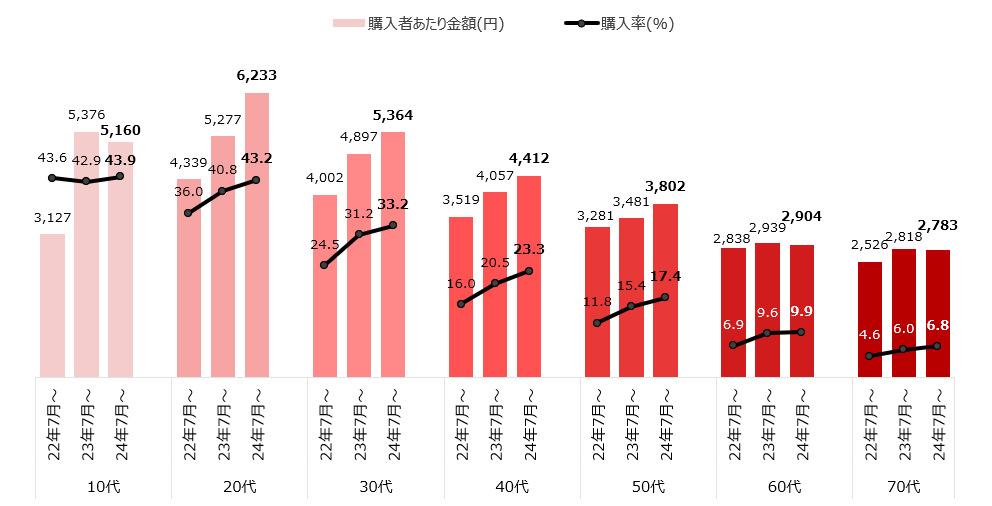 韓国コスメ 年代別 購入率・購入者あたり金額トレンド