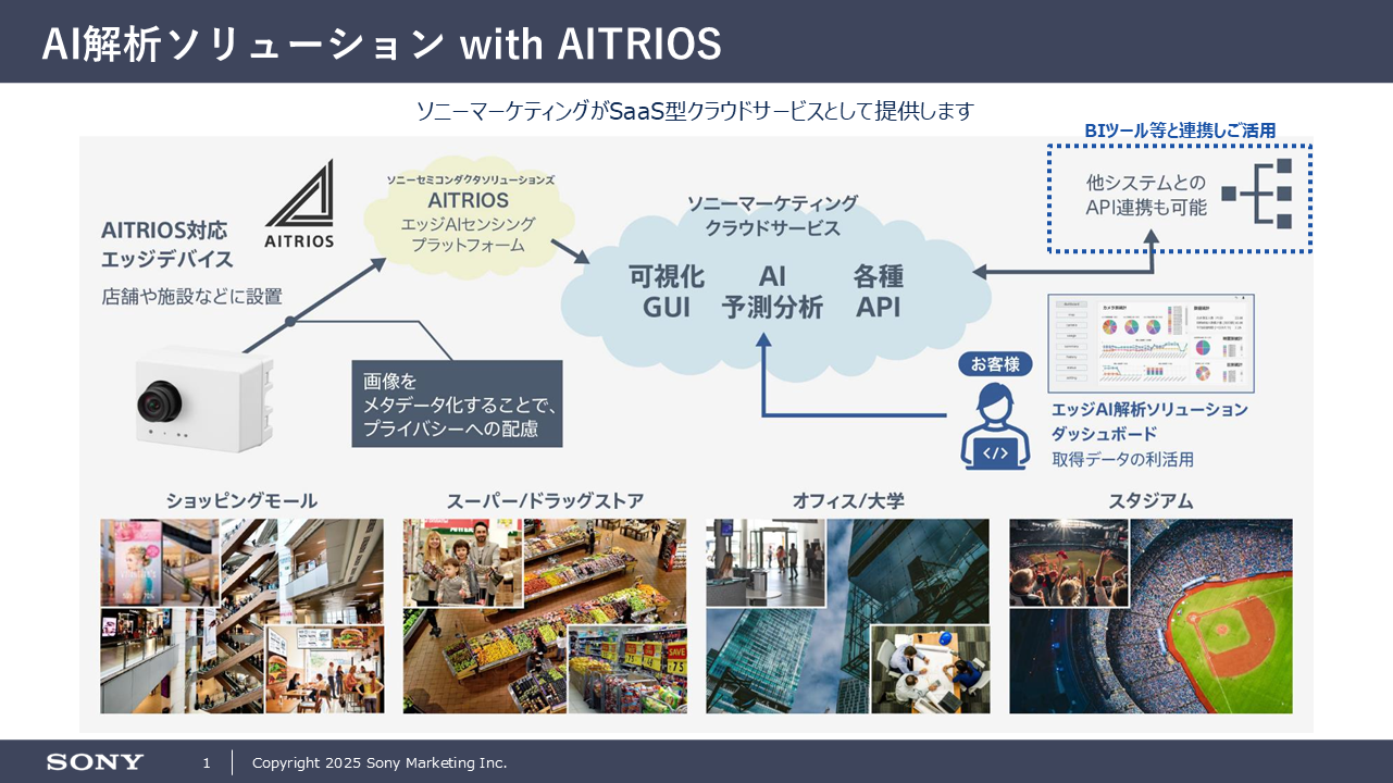 一つ目の「データ収集」を実現する鍵となるのが、ソニーが提供する「AITRIOS」というエッジAIプラットフォームだ。