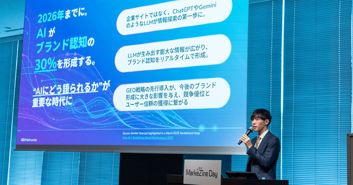 ガートナーの予測によると、2026年までにAIがブランド認知の3割を形成するとされているデータを踏まえ、「今後は、企業やブランドがAIにどう語られるかが、ブランド認知やブランド形成に大きく寄与する要素になってくると考えられる。セッションでは、生成AI時代の顧客に“選ばれる理由”について共有したい」と髙橋氏は語る。