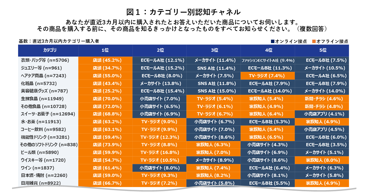 商品認知チャネルは「店頭」が最多