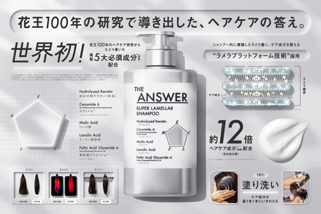 情報や商品にあふれる社会の中で、どのシャンプー・トリートメントを選べばいいのかわからない、いわゆる「シャンプー迷子」になっている方も多いでしょう。そのような方々へ、長年研究を重ねてきた花王から“答え”を提示したいという想いで「THE ANSWER」と名付けています。