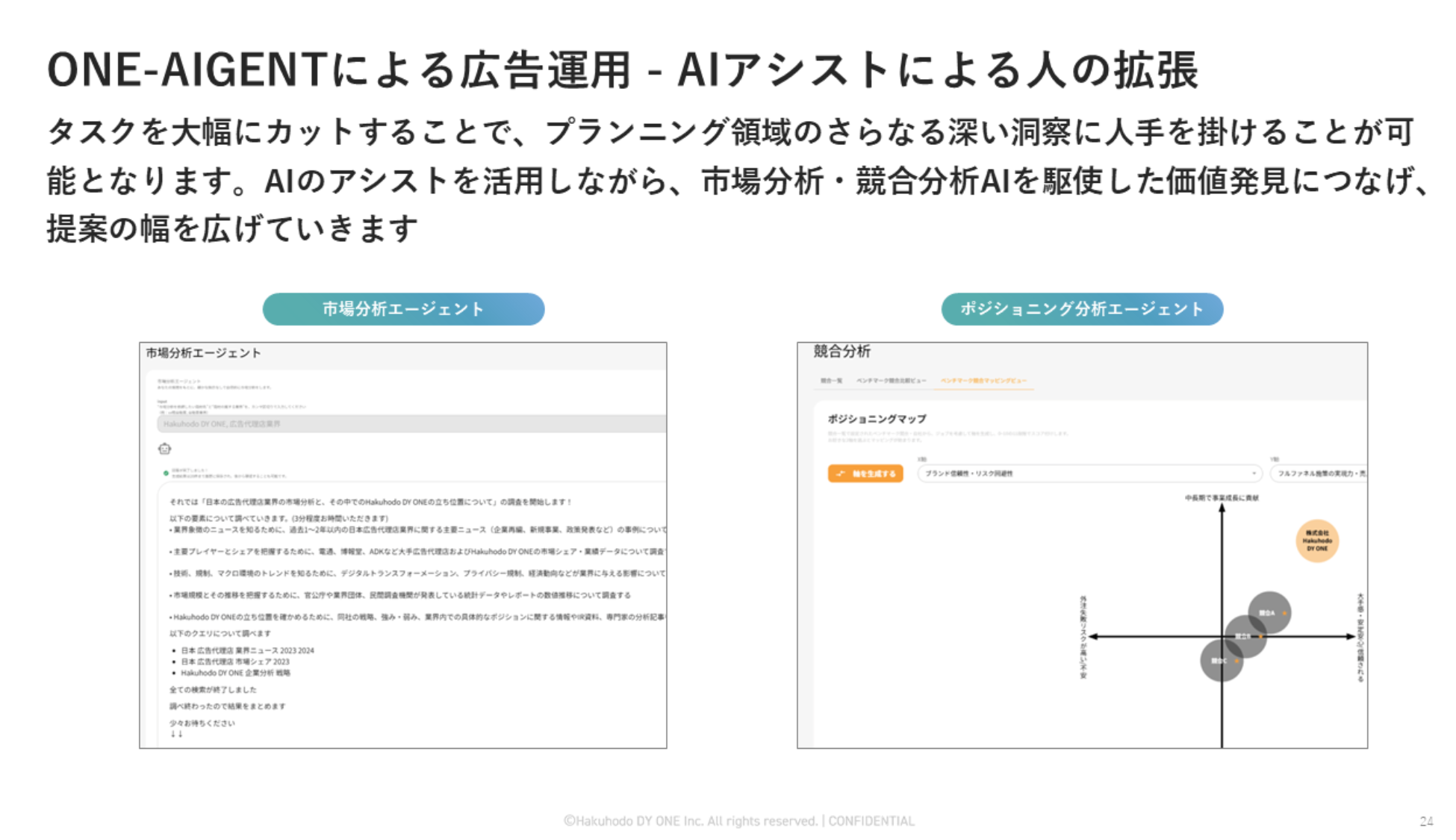 その後、リサーチ結果をもとに人間が最終的にマッピングのチューニングを行うことで、分析内容をより納得感の高いものに仕上げていきます。こうした分析は人手だけでは限界がありましたが、AIのアシストを借りることで分析の発見性につなげることが可能となりました。こうした傾向から、AIに対して人ならではの刺激をいかに与え、その出力結果を人間の洞察をもとにどうチューニングするかが勝負になってくると思います。
