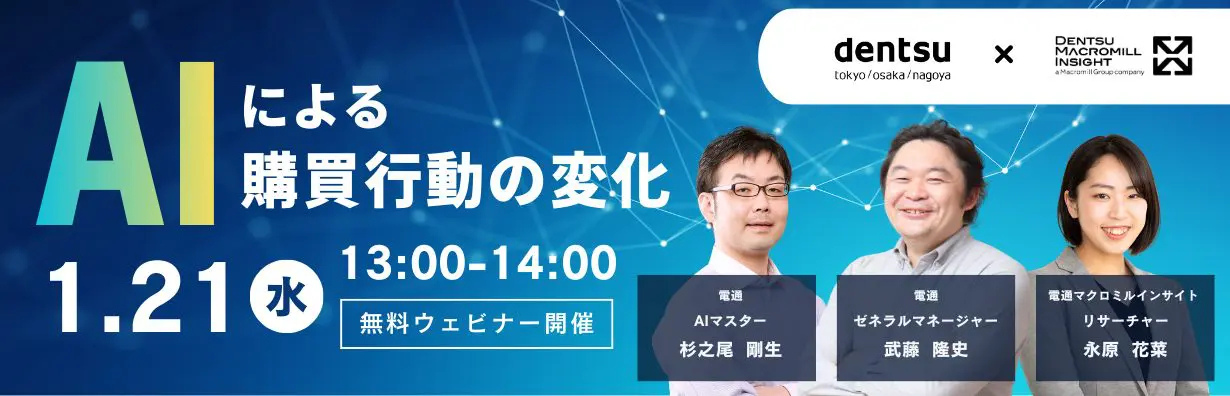 電通マクロミルインサイトは2026年1月21日(水)13時より「AIによる購買行動の変化」をテーマにしたセミナーを開催する。本セミナーは、電通と電通マクロミルインサイトによる共催となる。