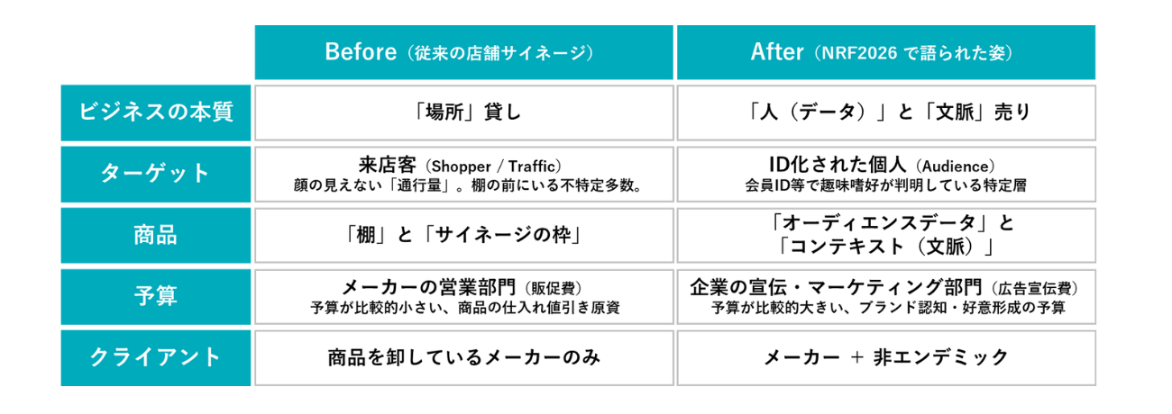 デジタル広告のCookie規制が進み、ターゲティング精度が揺らぐ中、確実な購買履歴とリアルな接点を持つ「実店舗」のメディア価値は、相対的に高まっている。