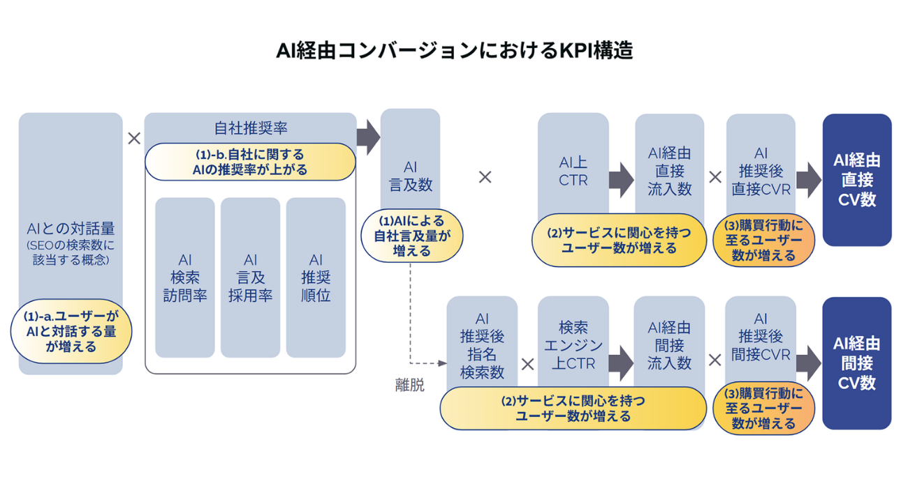 AI経由のCV(AICV)数が増えるためのレバーとしては、大きく分けて次の分類が可能です。