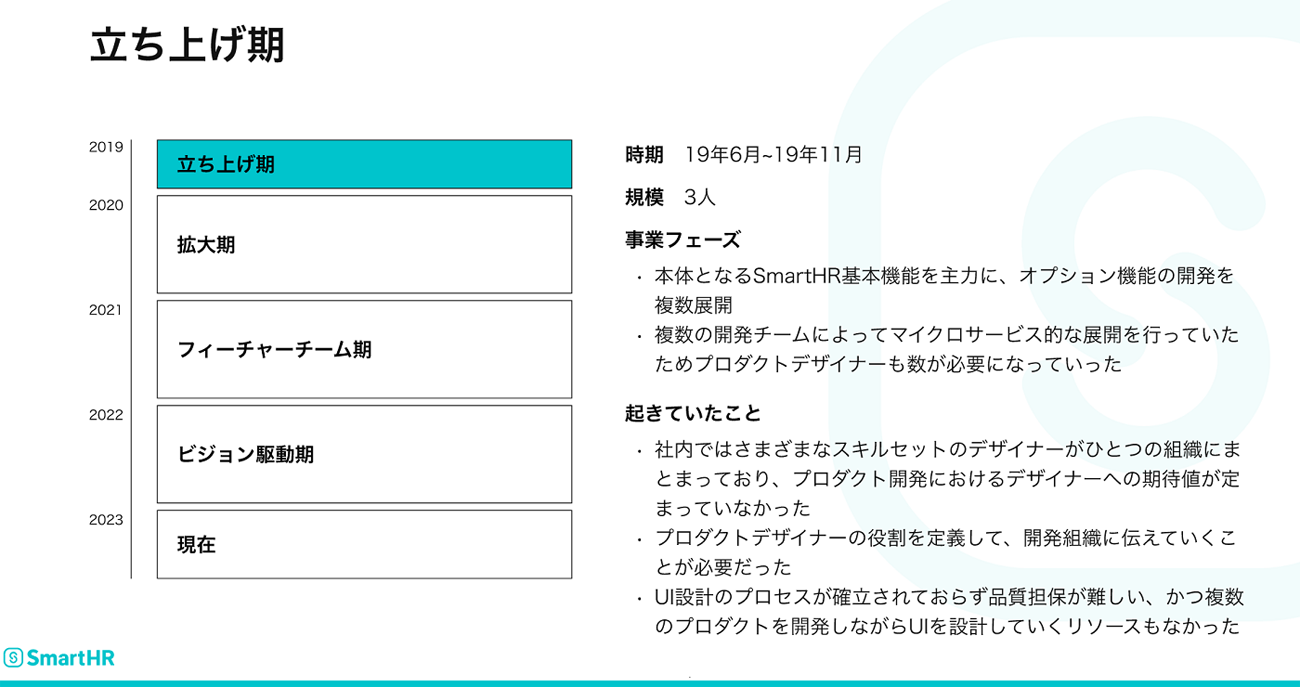 2019年、プロダクトデザイン組織の「立ち上げ期」は、3人からスタート。佐々木氏はその時期を次のように振り返る。