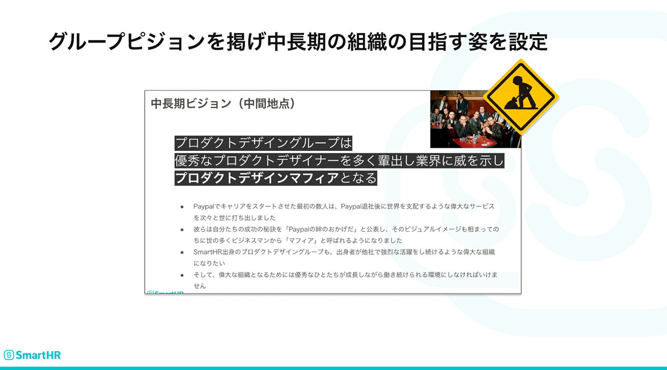 そこで、グループビジョンを見直し、中長期で組織が目指すべき姿を設定。また、プロダクトデザイナーのスクラムへの関わりかたをアップデートし、「チームにどっぷりとコミットするのではなく、複数のチームを外から支援することもできるように期待値を調整」した。さらに、個人の取り組みがグループや会社のビジョンに紐づき、局所化することを防ぐべく、目標設定のガイドラインも用意するなどの取り組みがなされた。