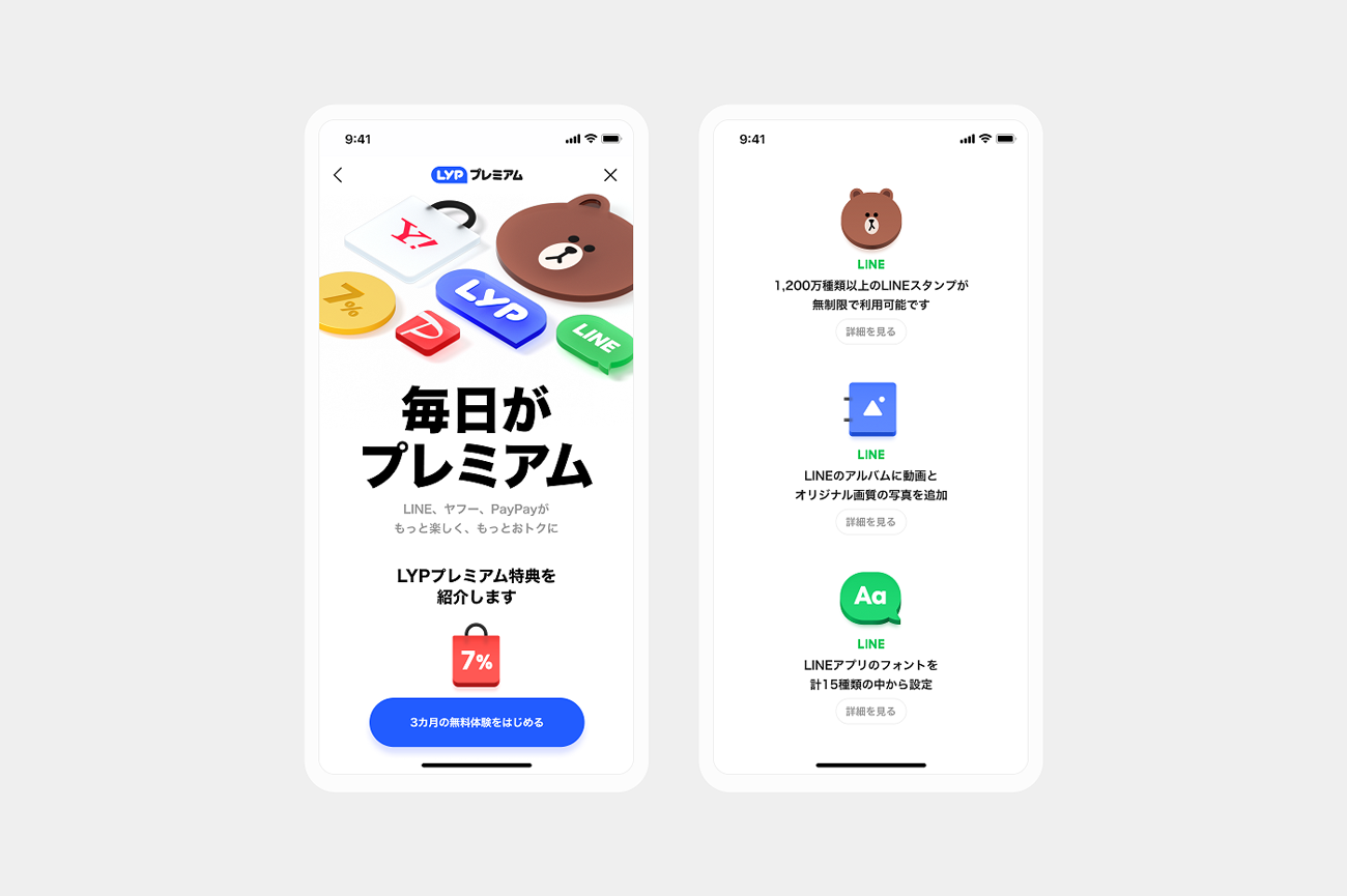 「私たちが加わった昨年5月ごろにはイメージも少しずつ固まっていたため、その『見せかた』の部分を中心に着手していきました。LINEとヤフー、それぞれのデザインスタイルを崩さないようにしながらも、LYPプレミアムというひとつのサービスだと伝えるためにはどのような表現が良いのか。密に話し合いを重ねました」(鹿熊さん)