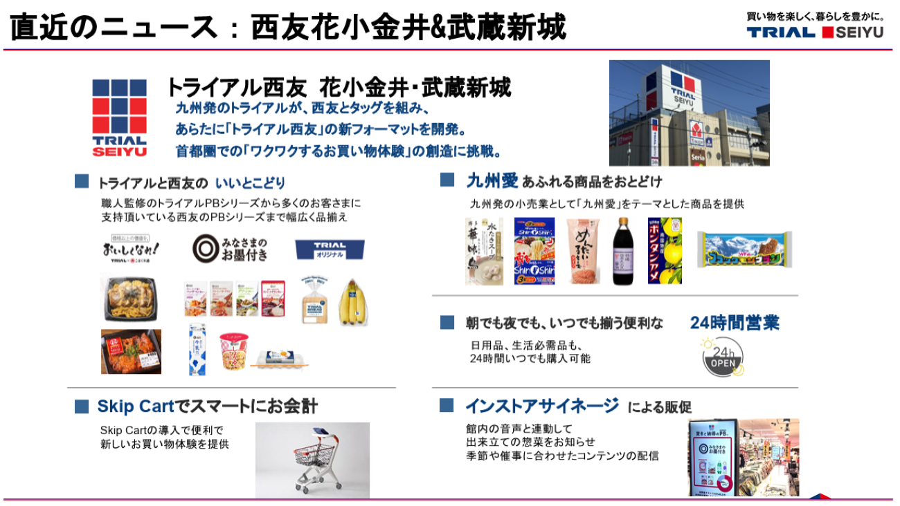 現在トライアルは九州での成功モデルを携え、首都圏での展開を急速に広げている段階だ。その一例として、サテライト型小型店「TRIAL GO」と、既存の西友店舗をリニューアルした「トライアル西友」が挙げられる。