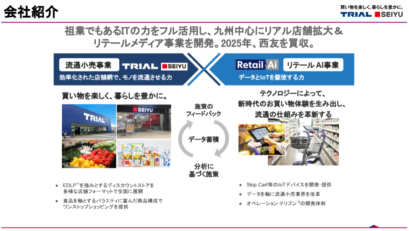九州を中心に店舗を拡大してきた流通小売企業、トライアルホールディングス。2025年の西友買収によって、売上高1.3兆円規模の「トライアル経済圏」を構築したことも、多くのマーケターにとって記憶に新しいトピックスだろう。