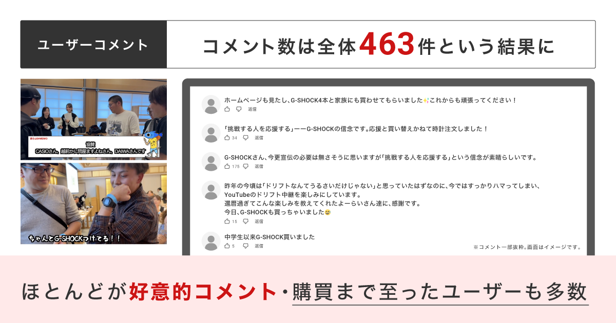 ただ、今回の取り組みで得られた最大の収穫は、短期的な売上増以上に、G-SHOCKの本質と共鳴する形でブランドを自然に露出させ、その結果、熱量の高いコミュニティの中で受け入れられる構造を設計できたことにあります。一過性の成果ではなく、中長期でファンを増やしていくための土台を築けたことこそが、本質的な価値でした。