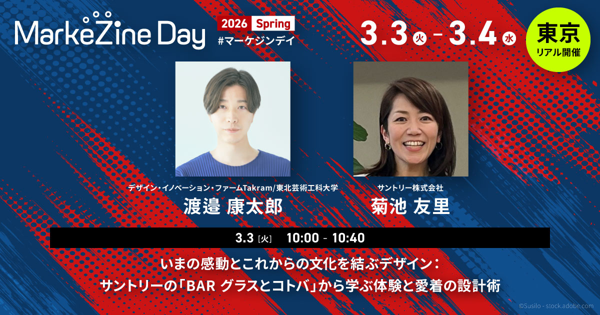 このセッションでは、5,000件以上の予約待ちが発生するほど話題となったサントリーの「BAR グラスとコトバ」を例に、体験型施策成功のポイントを深掘り。さらに、「目の前の感動(今)」を、いかに「これからのブランド(未来)」へ接続していけばよいのか、中長期的な目線で考えていきます。