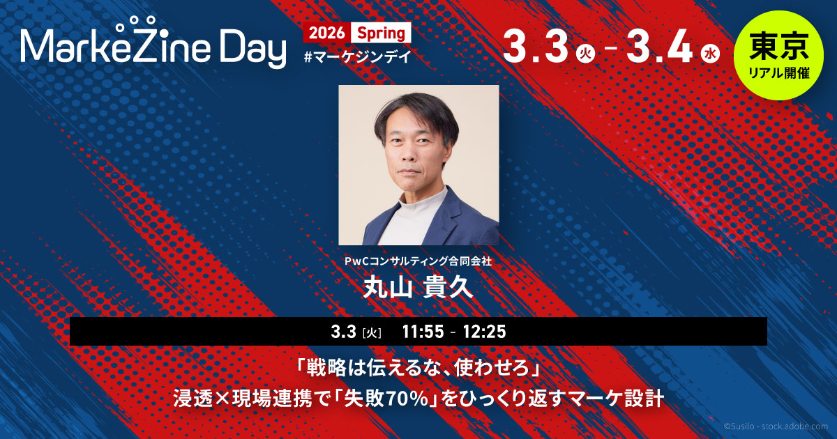 PwCコンサルティングの講演『「戦略は伝えるな、使わせろ」 浸透×現場連携で「失敗70%」をひっくり返すマーケ設計』では、戦略が現場で使われない理由を整理し、その乗り越え方を具体的なフレームと実例を交えて解説します。戦略設計のノウハウだけでなく、実行~評価までセットで学ぶことができるセッションです。