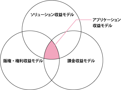 この収益モデルの面白いところは、アプリケーション開発者の手によってアプリケーションが開発され、かつ権利化し、App Storeという母体を通じてユーザーへの課金に至るという流れにある。よくよく考えてみれば、この収益モデルは既存の5つの収益モデルのうちの「ソリューション収益モデル」「版権・権利収益モデル」「課金収益モデル」が複合してできあがったものでもあると言える。
