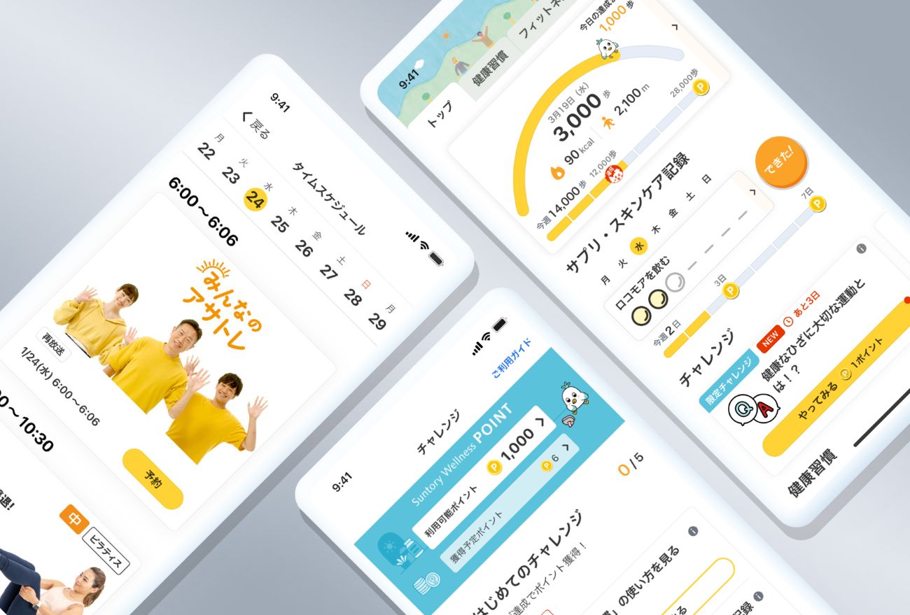 具体的には、体のお悩みに合わせた健康行動を、ポイントを貯めながら習慣化できるようにしています。ウォーキングなど日常に取り入れやすい健康行動のサポート、プロのインストラクター監修による自宅で1分からできるフィットネスレッスン、健康豆知識などのお楽しみコンテンツ、さらにはイベント招待やプレゼント企画まで幅広く提供しています。