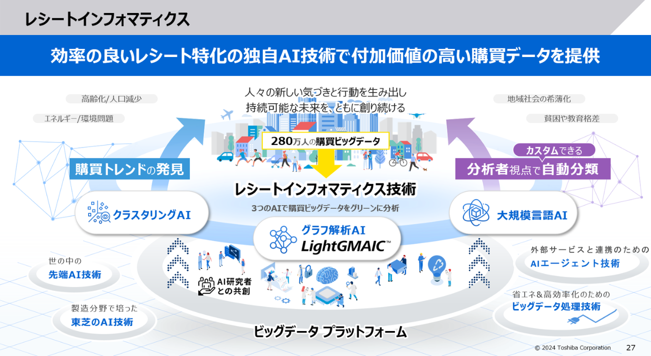 現在東芝デジタルソリューションズでは、スマートレシートとレシートスキャンによって収集した公開データを、AIエージェントを介して会話を通して活用できる環境を構築している。公開データを幅広く活用することで、経営課題に迫るデータ分析や、自社だけで見えなかったインサイトの発見につながるだろう。