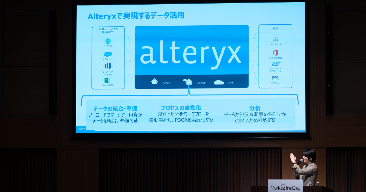 Alteryx(アルテリックス)は米国カリフォルニア州に本社を置き、創業28年を誇るデータ分析プラットフォームの企業だ。全世界の導入企業数は8,500社以上にのぼり、日本では2019年にオフィスを立ち上げ、金融業や製造業の代表的な企業をはじめ多くの企業に活用されている。様々な企業の課題を知る同社の田中祐美氏は、多くのマーケターに共通するデータ活用の悩みとして「属人化/見える化止まり/経験と勘による意思決定」という3つの課題を挙げる。