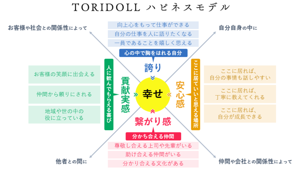 「各種文献や過去の成功事例を読み解いていくと、従業員の働く幸せは『安心感』『繋がり感』『貢献実感』『誇り』の4つのサイクルでつくられることに行き着きました。このうち離職減に特に効果があるのは安心感と繋がり感、業績向上に効くのは誇りと貢献実感だということがわかってきています。