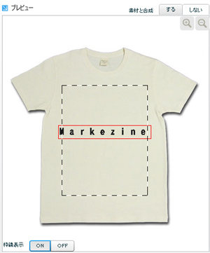削除後に新たに文字を商品に当て込みたい場合には、最初に説明した要領と同じ方法で、3つあるタブの中から「文字」を選択して文字入力後(Markezineと入力されている部分)【追加】ボタンを押せばOKです。