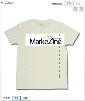 あとは、文字編集の方法を同じ形式で、サイズや表示位置を調整し、商品化ボタンをクリックしてください。
