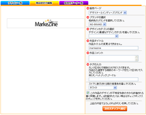 【商品化する】ボタンをクリックすると、その商品の販売ページやブランドを選択させるページが表示されるので、必要事項を入力しページ右下部にある【次のステップへ進む】ボタンをクリックします。
