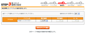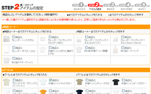 次のステップへ進むと、STEP2…「アイテムの設定」ができるようになっています。