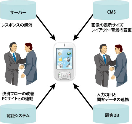 多くのサイトではCMS使っていて、キャリアや機種ごと、そして公式/一般サイトでページを出しわけしていますので、簡単なことのように思えるこのようなことでも、CMSの仕様を全部変えなくてはならなかったりします。となると、システム部門を巻きこまなくてはならないし、仕様変更にお金はかかるし、