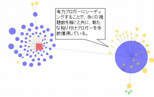 対して、影響力の強い有力ブロガー(アルファブロガー)のみに掲載を依頼できるサービスも存在する。このタイプのサービスでは、ブロガーひとり当たりの獲得単価は当然割高になるが、一人のブロガーから多くの視聴数を獲得することができる。また今まで関わってきた案件の実績から見ると、ペイパーポストに比べて、2次感染、3次感染が広がっていく可能性が高い傾向にある。