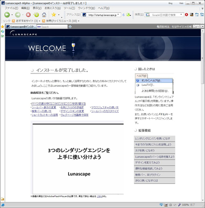 Lunascapeは代表的な国産タブブラウザの1つ。タブブラウザ推奨委員会の簡易年表によると第二期に属する。