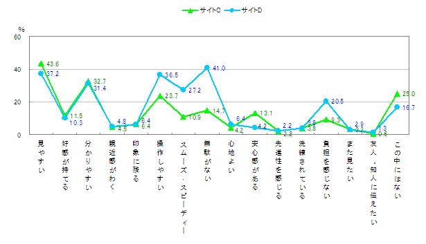 フォームを細かく分割したサイトCとフォームを分割していないサイトDの比較調査をした結果、フォームを分割していないサイトDの方がサイトCに比べ9ポイント好感度が高い結果となりました。