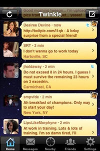 つぶやき共有サービス「Twitter」向けアプリケーションの1つ。140文字以内の「つぶやき」を、「フォロー」と呼ばれる友人と共有する。ふと感じたこと、今の自分の状況など、簡単な心のつぶやきが脈絡なく掲載される。なんとなくもれたひとことに誰かが反応してくれる、そんなゆるーいコミュニケーションが可能だ。