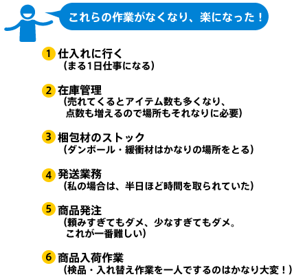 ドロップシッピングは、「発送業務がなくなる」「在庫を持つリスクがなくなる」などと、簡単にその特徴と要点を説明されることがよくあります。けれども当時、場合によってはネットショップを閉鎖しなければならないという状況に追い込まれていた私にとっては、ドロップシッピングによってその問題が解決でき、とてつもなく大きなメリットを得ることができました。