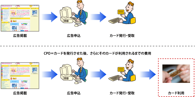 化粧品のトライアル案件であれば、CPAがトライアル商品を購入させる費用とすると、CPOはトライアルから本商品へ遷移した顧客の獲得費用となる。CPOベースのプロモーションの場合、1獲得あたりの報酬も高額となり、掲載媒体の選定とアプローチするターゲットの選定が重要となる。