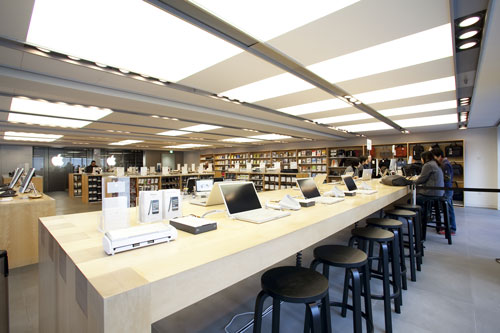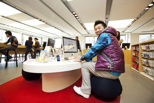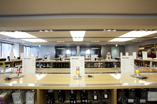 そして、一番奥にはこれまたMacの最新機器が置かれた「インターネットカフェ」が。カフェといってもお茶ができるわけではないが、自由にMacを使うことができるのは便利。銀ブラの途中でレストランを検索したり、観る映画を選んだりするのにもよさそう。もちろん、のんびりとマイペースで最新Macを試してみるのもいいだろう。