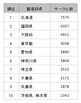 県別サークル数(上位10位まで、2009年2月25日時点)