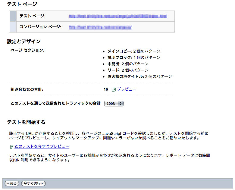 余談だが、筆者は初めのうちは全然うまくいかず心が折れそうになった。原因はクライアントから支給されたHTML文書構造に微妙な間違いが合ったことだった。このような場合でもきちんとプレビューでチェックをしていれば大きな問題にはならない。十分なチェックを行ったら、「いますぐ実行」を押してテストを開始しよう。