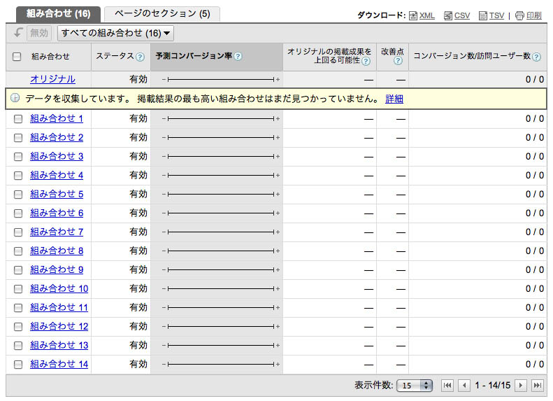 テストを開始してすぐの段階は数値がかなり不安定だが、それでも1日1回はレポートを確認してもらいたい。毎日確認していく中で、コンバージョンが低迷し続けている「見込みのない組み合わせ」というのが相当数見つかるはずだ。