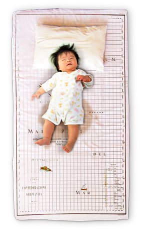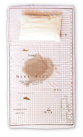 この作品はハンバーガー屋で思いついたんです。友達とハンバーガーやポテトを食べているときに、トレーに敷いてある紙に油が落ちて、シミになったんです。そのシミを見て、何かグッズにできないかと膨らませていったのが世界地図です。おねしょを世界地図に例える表現も、かわいくて昔から好きだったんですよ。