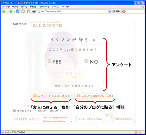また、テレビCMとの連動という点では、もうひとつポイントがあります。それはタレントを起用しないことで、ブログに貼り付けられるようにしたことです。今では多くの企業サイトがテレビCMのビデオクリップを公式サイトで閲覧可能にしています。しかしブログに貼り付けられるように<embed>タグなどを公開している企業はまずありません。