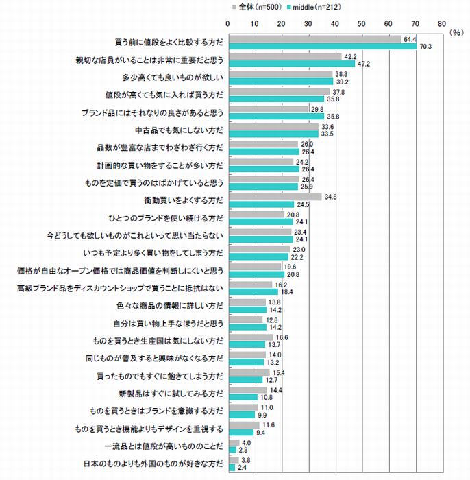 消費行動(複数回答)【全体:n=500、middle:n=212】