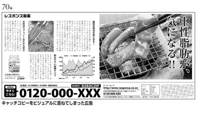 昨今の新聞紙面を見ると、レスポンス広告の割合が半分以上になっている日もある。健康食品、化粧品をはじめとする物販系、保険・損保、証券の金融系、そして旅行、通信教育等のサービス系と花盛りである。広告はマ4媒体を中心として商品やサービスを消費者に認知しもらうことを目的としてきたが、商品やサービス、そしてメディアの多様化を背景に、直接、顧客がオファーできる広告の存在がクローズアップされてきた。一方、インターネットがインフラとなりつつある現在、媒体ごとのいわゆる「縦割り的発想」から、広告をより横断的にとらえる視点も求められてもいる。