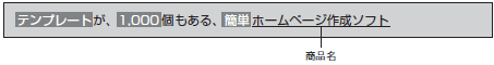 練習問題 あなたは、ホームページ作成ソフト(商品名)で価値のある時間とお金を節約する ことができます。必要なサイトのすべてをこの1 つのソフトで作ることができま す。そして、どんなサイトでも対応する1,000 のテンプレートを持っています。 ダウンロードは簡単にすぐにできます。ダウンロード後、すぐにテンプレートは利 用できます!