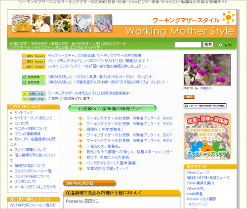 ワーキングマザーによるワーキングマザーのためのサイト「ワーキングマザースタイル」。