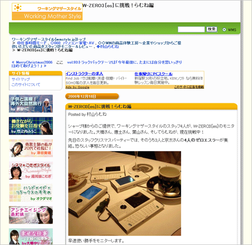 2006年12月に、「ワーキングマザースタイル」のメンバーで、
