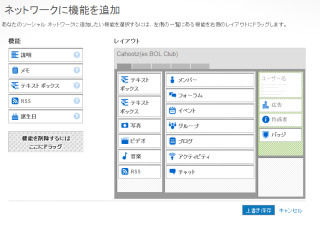 管理者ツールもよくできている。SNS内でのメンバーの行動を示す「最新アクティビティ」などトップページに掲載するコンテンツは、管理者が自由に選択し、かつドラッグ&ドロップで配置できる。むろん、非表示にしても構わない。