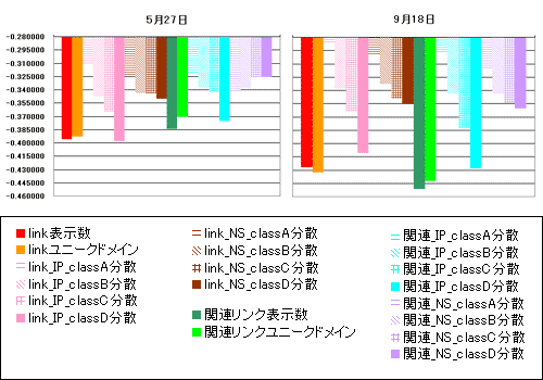 - link_NS_classA~D分散:linkユニークドメインのネームサーバーのIPを各classまでの単位で重複削除した数