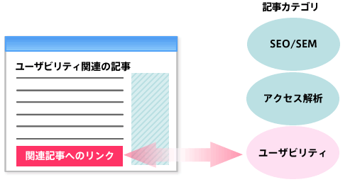 ニュースサイトやWebマガジンの場合、掲載情報が非常に多く、情報のジャンルやテーマなども多岐に渡ります。例えば「ユーザビリティ」に興味を持っているユーザーの場合、ユーザビリティに関する記事を読んだ後に同じカテゴリから情報を入手したいと考えると思います。